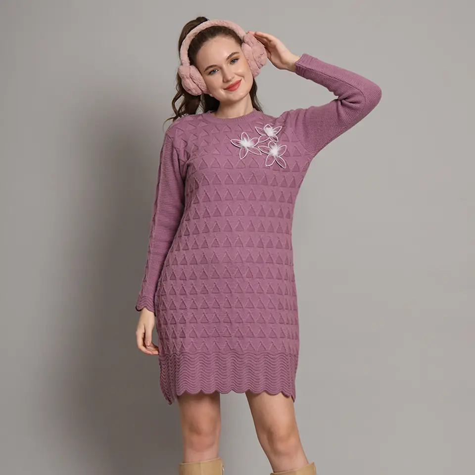 Women’s Navy & Pink Patterned Knit Winter Dress