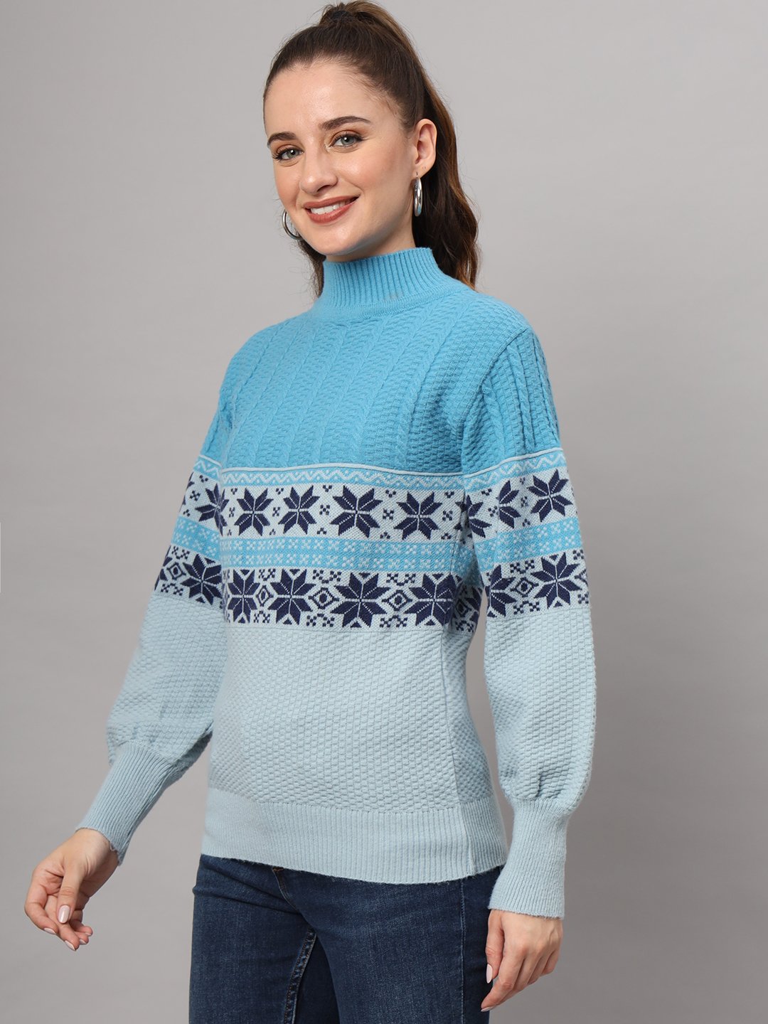 Women’s Aqua Blue Fair Isle Knit Mid-Length Winter Sweater Top