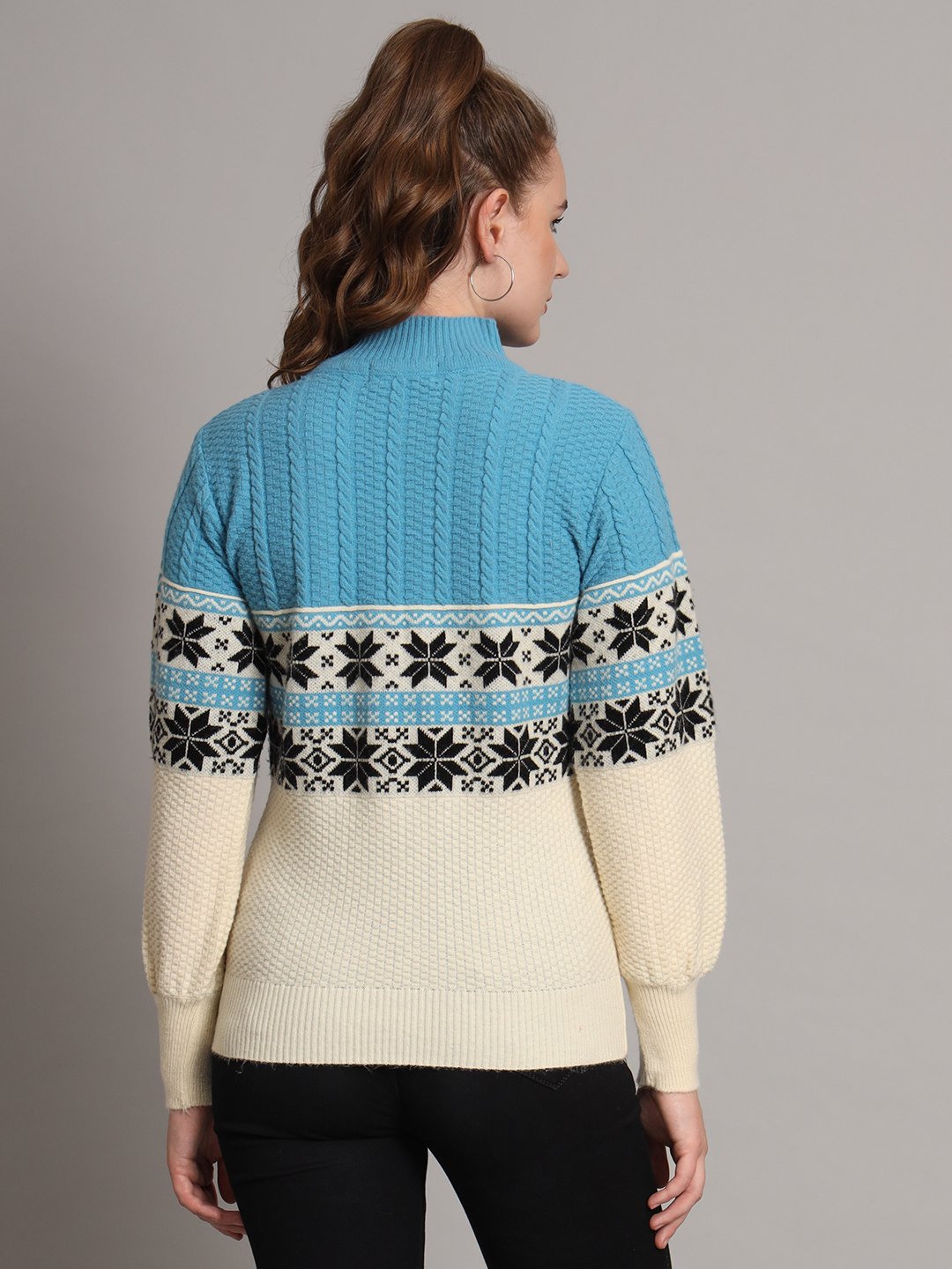 Women’s Sky Blue & Ivory Fair Isle Knit Mid-Length Winter Sweater Top